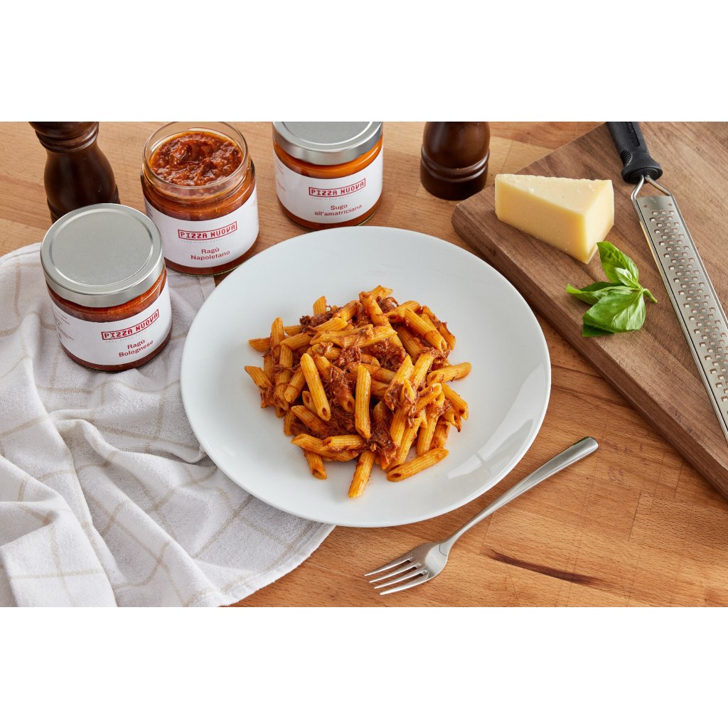 Složení: rajčata 58 %, vepřové maso 23 %, hovězí maso 11 %, červené víno (obsahuje siřičitany ), mrkev, celer, petržel, slunečnicový olej, extra panenský olivový olej, jedlá sůl, rozmarýn, pepř černý