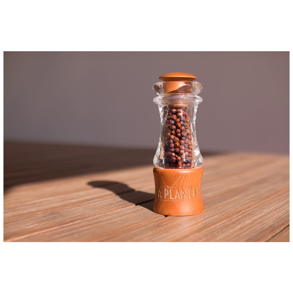 Mlýnek na pepř La Plantation, buk odstín třešeň 16cm + červený Kampotský pepř