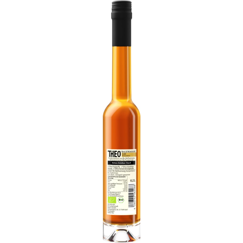 BIO Gold je delikátní kompozice z BIO bílého vinného octa a koncentrovaného BIO hroznového moštu s důrazem na každý detail výrobního procesu.