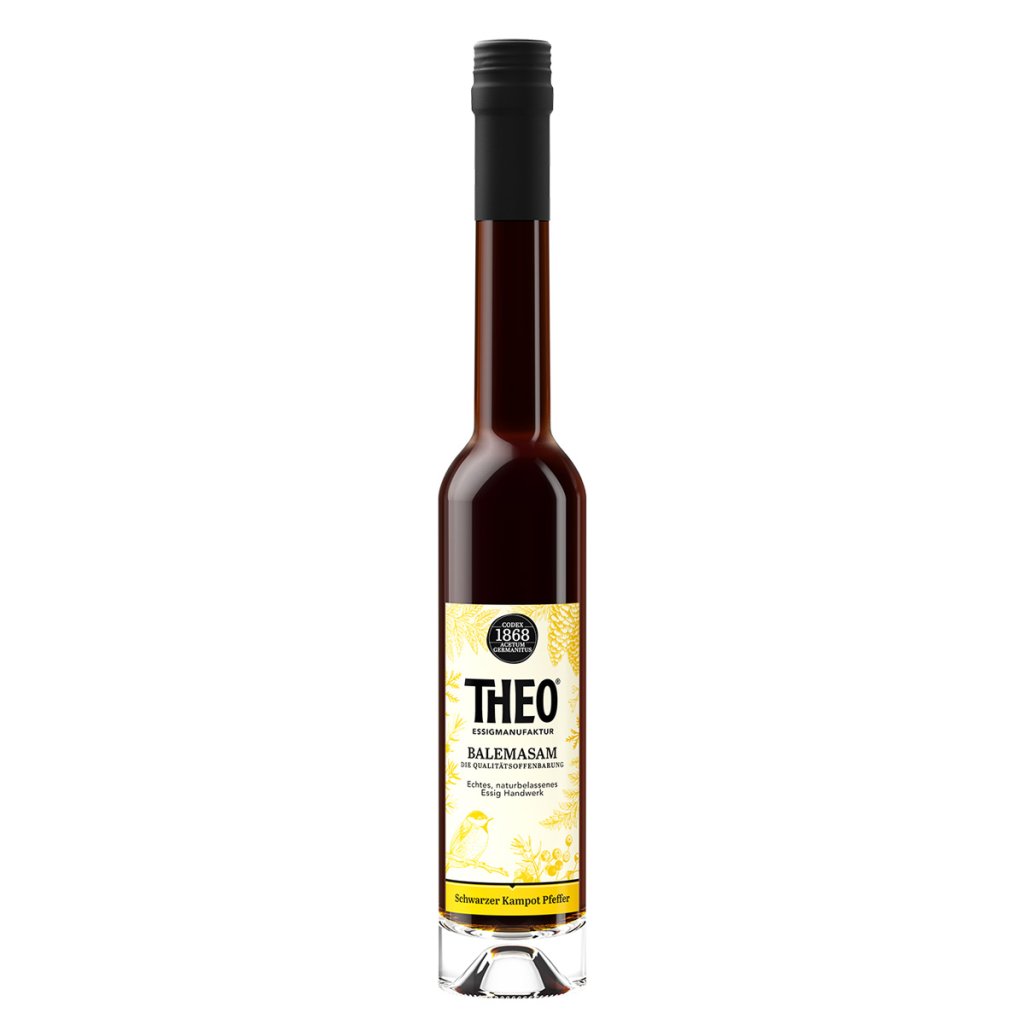 Vynikající balzamikový ocet s černým Kampotským pepřem. Složení tohoto octa se skládá z jemného vinného octa, redukovaného hroznového moštu a nádechu černého Kampotského pepře.